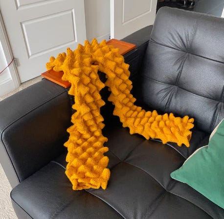 I’ve been knitting alot lately! In my pre-library life I studied textiles and now textile making has become a significant art practice for me, that has absolutely nothing to do with profit or making money. It has felt so liberating, and I feel like I’ve regained my love for textiles. So as it is winter, I have been knitting because it just feels so right! My favourite source of inspiration lately has been a beautiful maker called Ranti Studio. Using her patterns I’ve been exploring textural and sculptural knitting, and it has been so satisfying, and beautiful. I feel like I’m creating mountains and valleys with my bare hands. It’s truly magic.